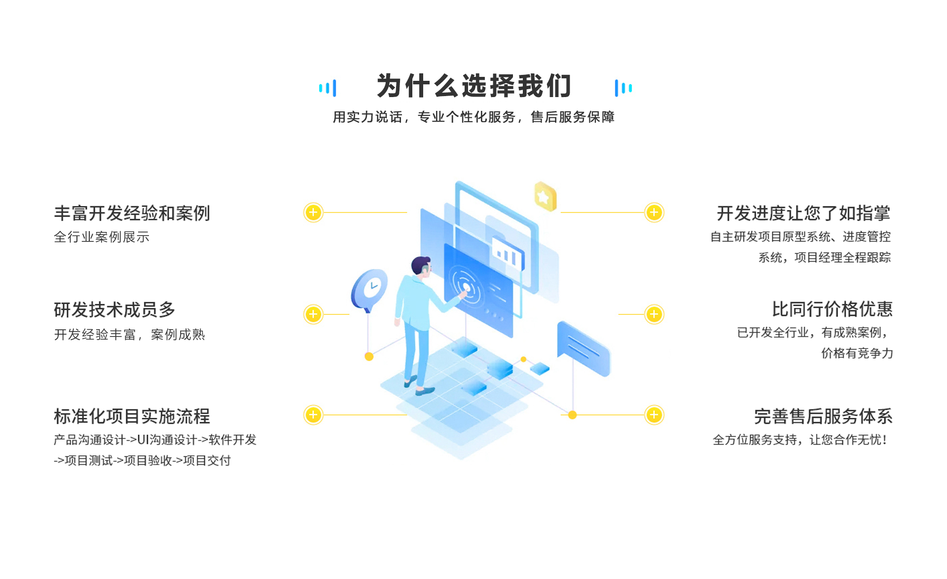 5、售后服务:提供稳定的技术售后支持。包含bug修复、硬件升级方案、数据并发方案。