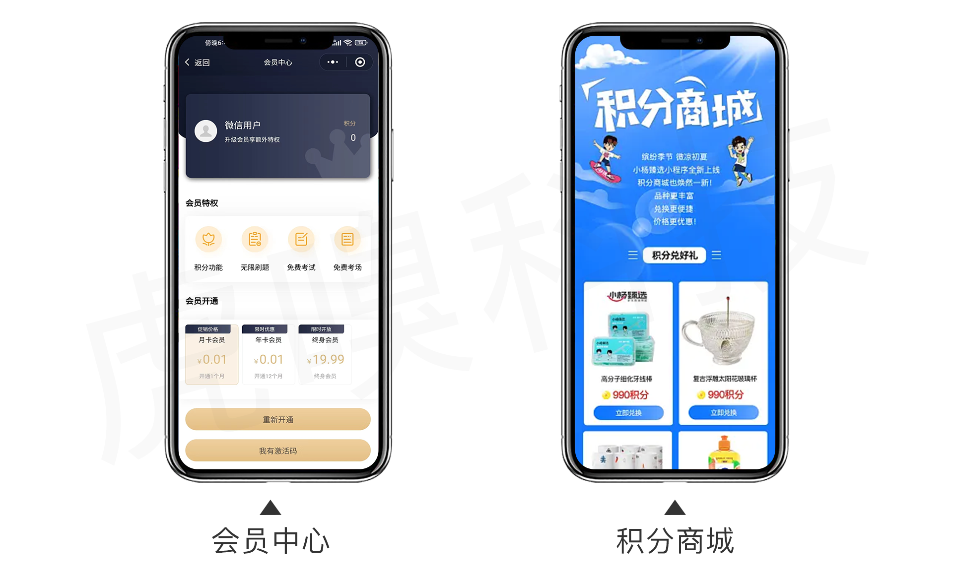 2、积分商城:用户通过平日登录、练题、考试等多渠道获得积分,在积分商城去兑换礼品。