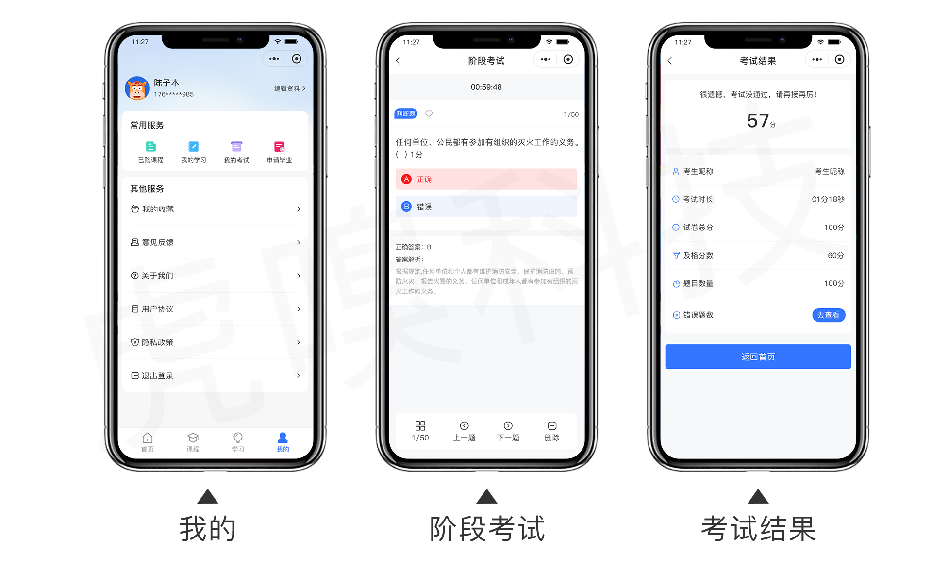 1、试题类型:支持判断题、单选题、多选题、填空题、等多种试题类型,提供了自由后台编辑功能;