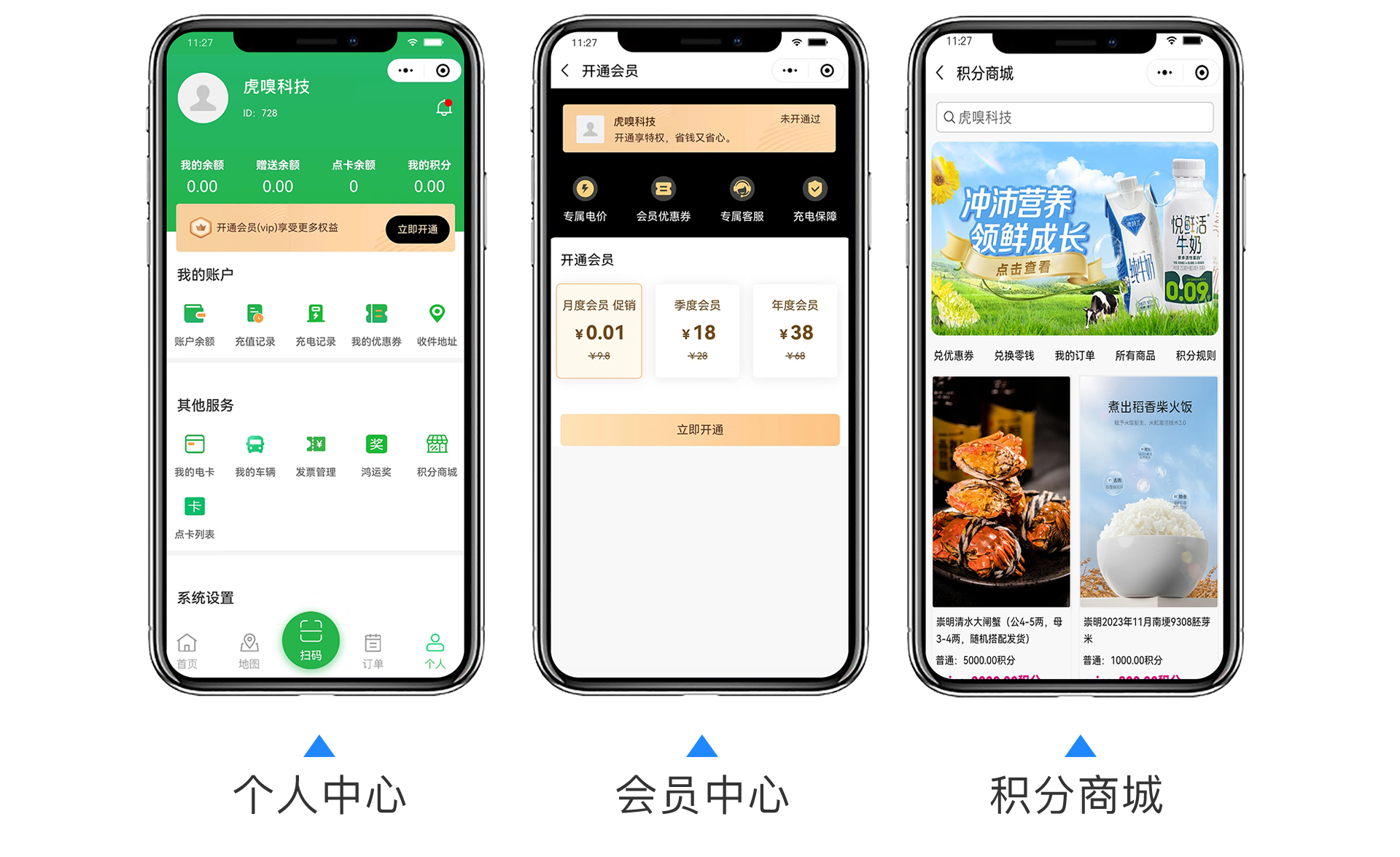 1、积分商城:充电获取积分之后,用户可以在商城进行兑换商品;