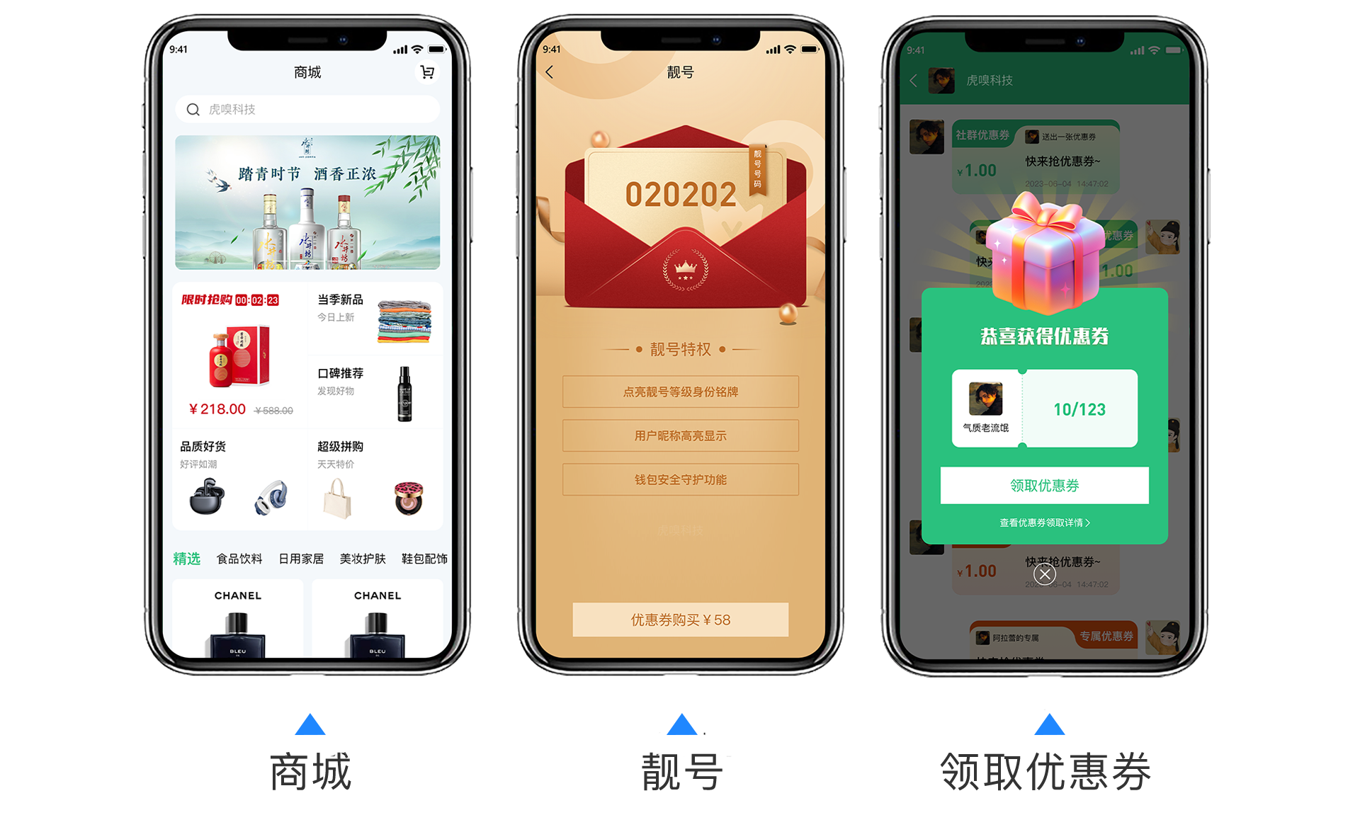 (1)靓号商城:靓号用于社交增值项,靓号等级对应不同的折扣等级。购买对应的靓号会获取不同的权益,这样靓号在社交的基础上增加了电商属性。
